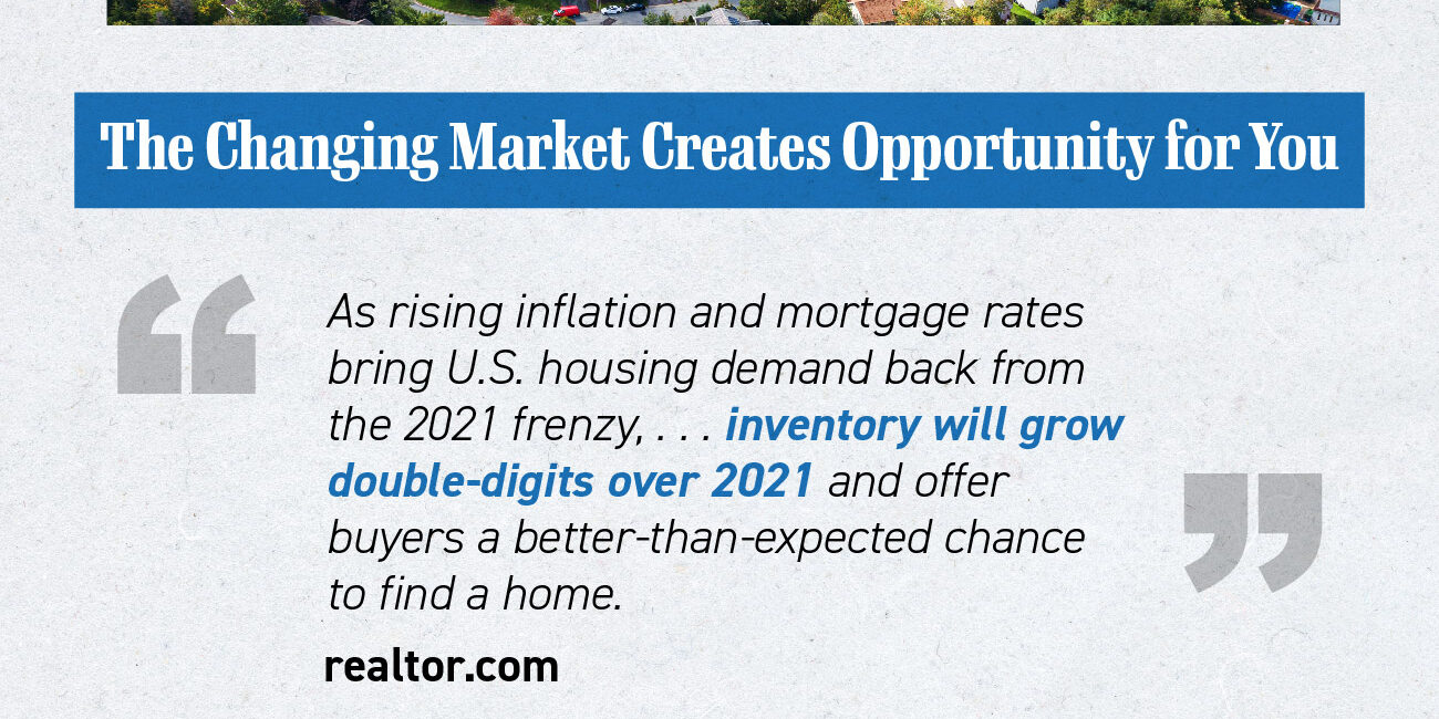 - If you’re planning to buy, additional options in today’s market may be just what you’ve been waiting for. More inventory means added opportunities to find the home of your dreams.